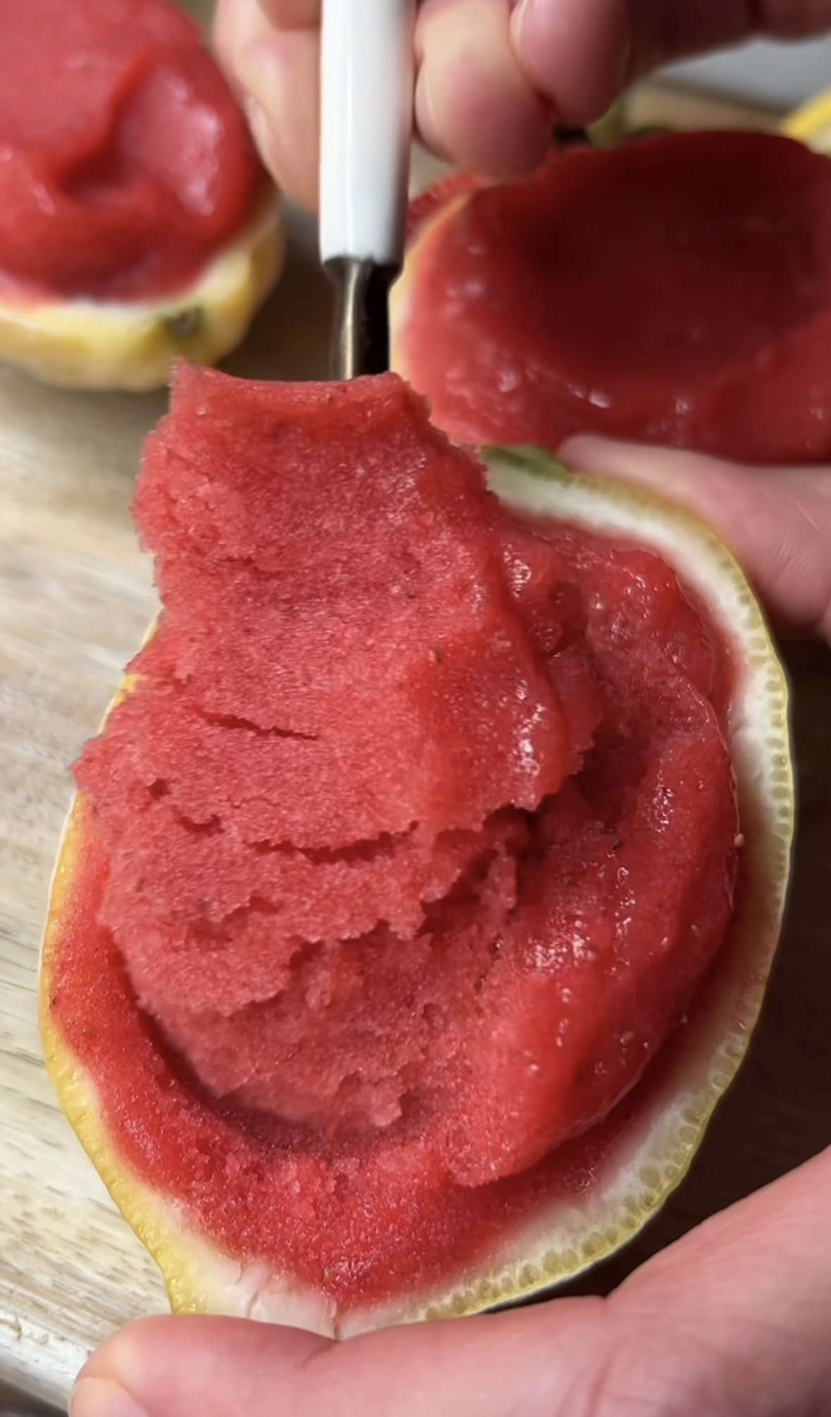 ووثق آخرون تجربتهم بالصور في محاولة قطع حبة البرتقال إلى نصفين وتفريغ كل نصفِ من محتواه لتُستخدم قشرة البرتقال كوعاء ليضع في منتصفها كرة من الآيسكريم بنكهة مختلفة.