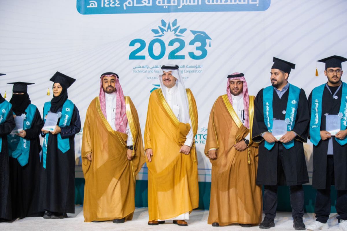 جاء ذلك خلال رعايته حفل التخرج الموحد، وتخريج 8800 شاب وشابة من الكليات التقنية والمعاهد الصناعية الثانوية، ومعاهد الشراكات الإستراتيجية والكليات العالمية ومنشآت التدريب الأهلي بالمنطقة، في مركز الظهران «إكسبو»،، بحضور محافظ المؤسسة العامة للتدريب التقني والمهني د. أحمد الفهيد، ومدير عام التدريب التقني والمهني بالمنطقة الشرقية م. بدر بن العبدالواحد، وعمداء الكليات ومديري المعاهد بالمنطقة.