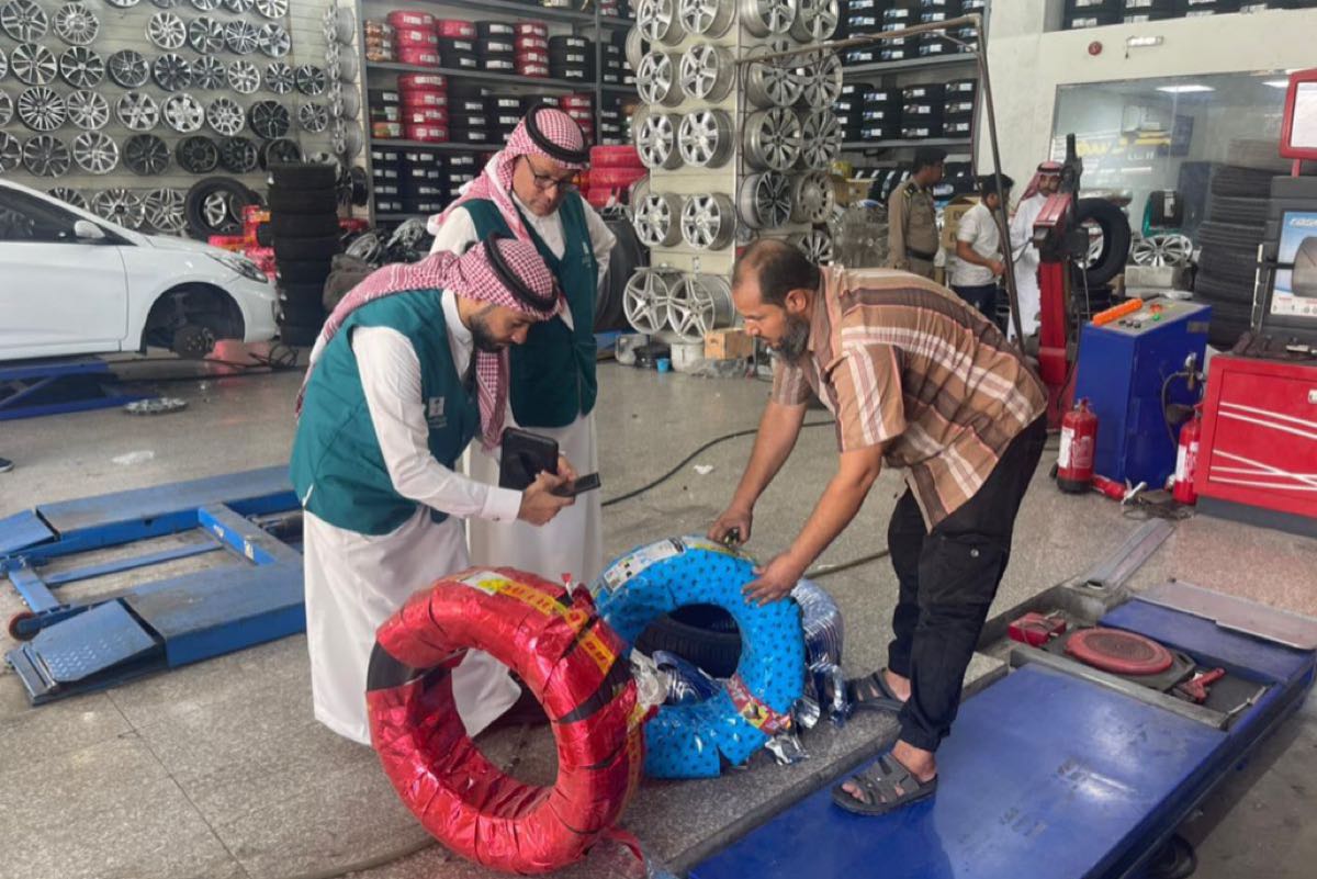 وجاء ذلك خلال تفتيش 348 مركزًا ونقطة بيع للإطارات الجديدة وخدمة السيارات.