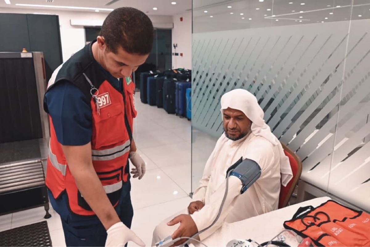 وعمل الفرع على فحص العلامات الحيوية للحجاج وتوعيتهم بطرق طلب الخدمة الإسعافية أثناء تواجدهم بالمملكة سواء عبر رقم الخدمة الطبية الإسعافية «997» أو من خلال تطبيق «أسعفني» للبلاغات الإسعافية الموجود في تطبيقات الهواتف الذكية.