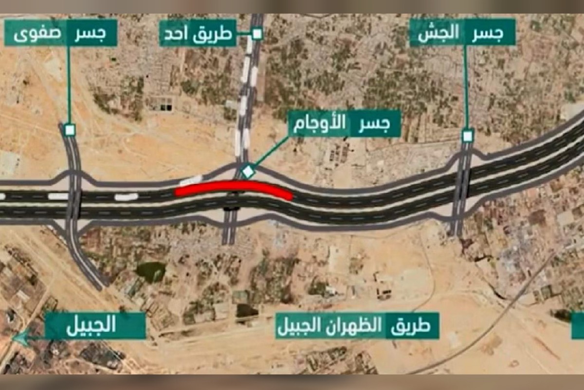 بدء أعمال التحويلة المرورية على طريق «الجبيل الدمام السريع» فوق جسر الأوجام