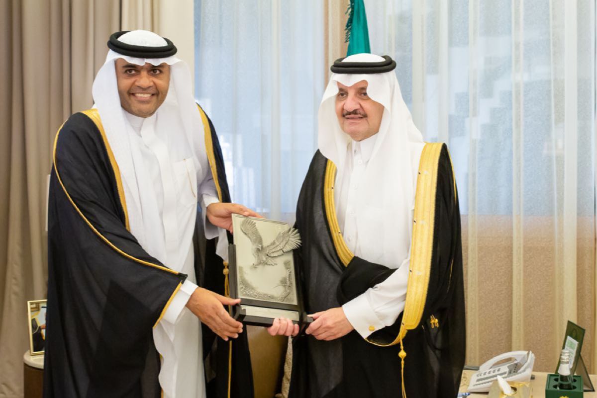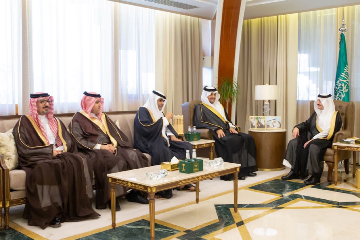 وثمن، خلال استقباله في مكتبه بديوان الإمارة، اليوم، رئيس مجلس إدارة نادي الخليج الرياضي بسيهات م. علاء الهمل، يرافقه أعضاء مجلس إدارة النادي، وعدد من اللاعبين، بمناسبة تحقيق النادي إنجازات رياضية مختلفة، جهود إدارة النادي واللاعبين خلال الموسم الرياضي لتحقيق هذه الإنجازات المشرفة.