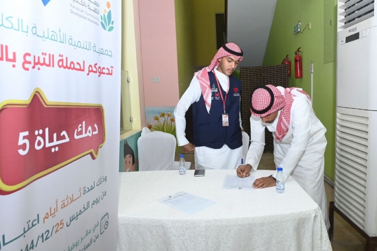 دشنت جمعية التنمية الأهلية بالكلابية حملة التبرع بالدم الخامسة بالتعاون مع ”تجمع الأحساء الصحي“، برعاية ”بنك الدم بمستشفى الولادة والأطفال بالأحساء“.