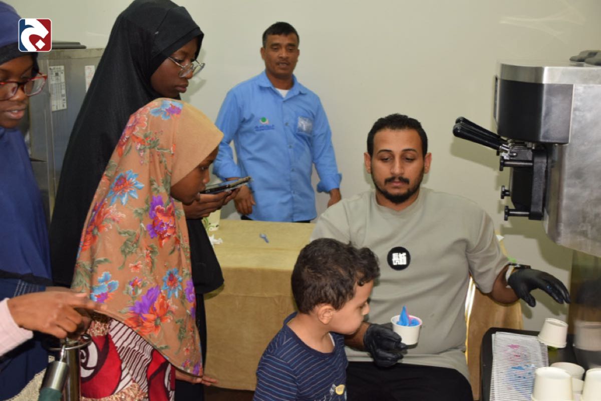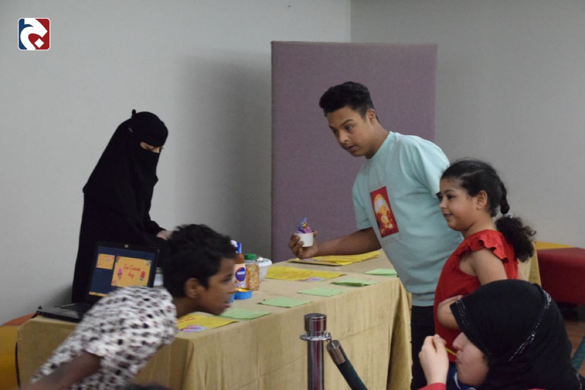 وتضمنت الفعاليات الحديث مع الأطفال عن طريقة صنع الآيس كريم داخل المنزل بطريقة بسيطة، وكيفية تزيينه بالمكونات المختلفة، والتطرق إلى فوائده للجسم، خاصةً أن مكوناته طبيعية من فواكه وحليب وتحتوي على الكالسيوم والفيتامينات بالإضافة إلى مساهمته في زيادة هرمون السعادة الذي يفرز بعد أكله ومفيد للأجواء الحارة.
