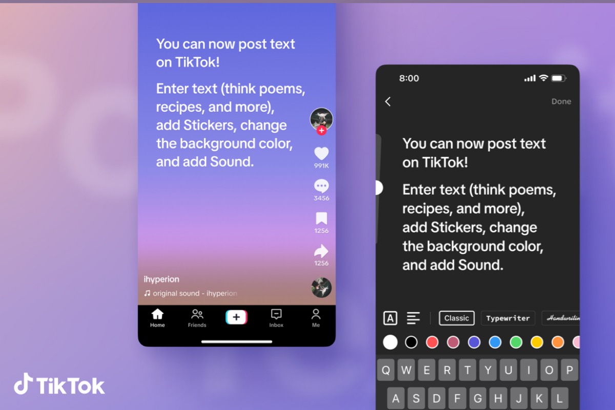 وكتب ”تيك توك“ في إعلان الخدمة الجديدة: عبّر عن إبداعك بمنشورات مكتوبة على تيك توك.