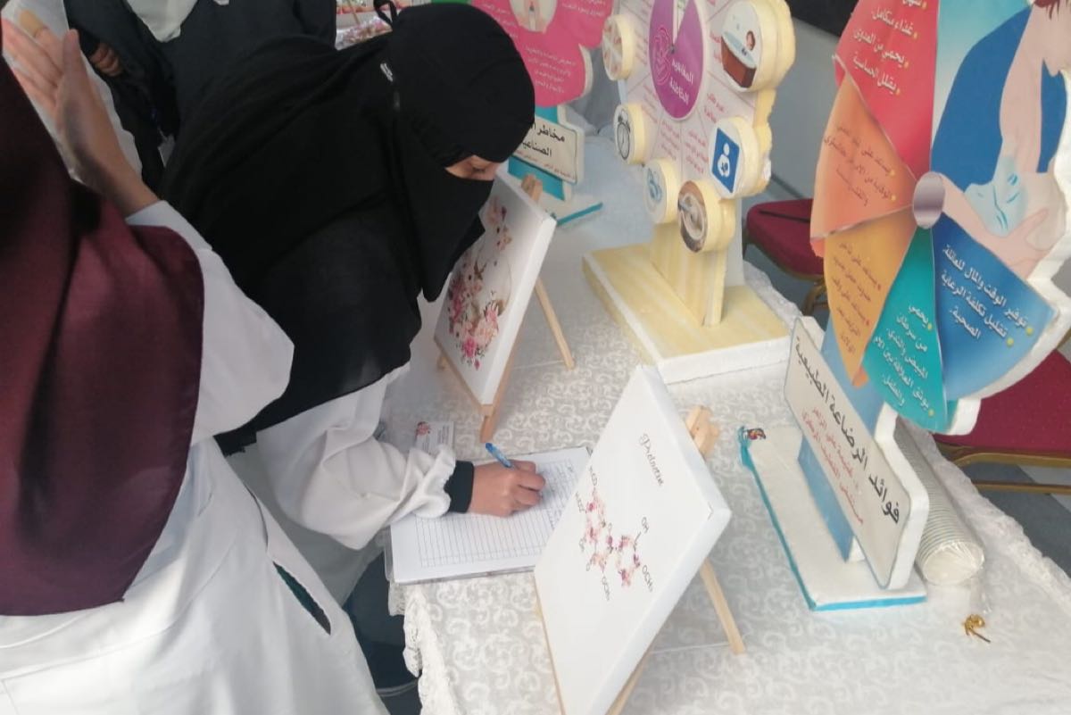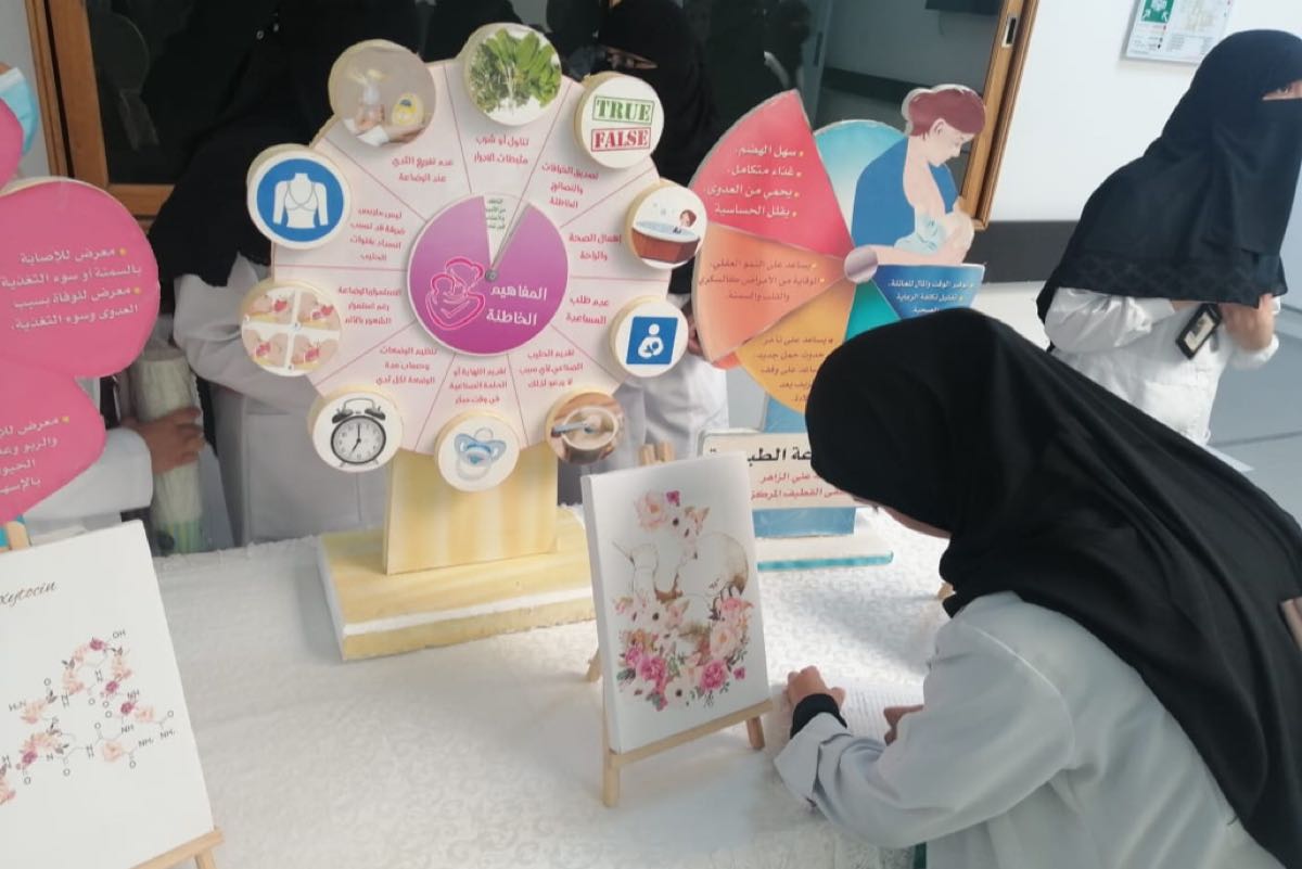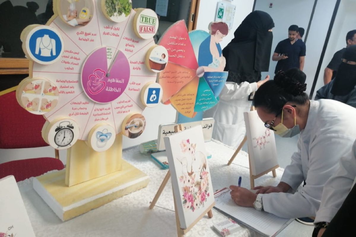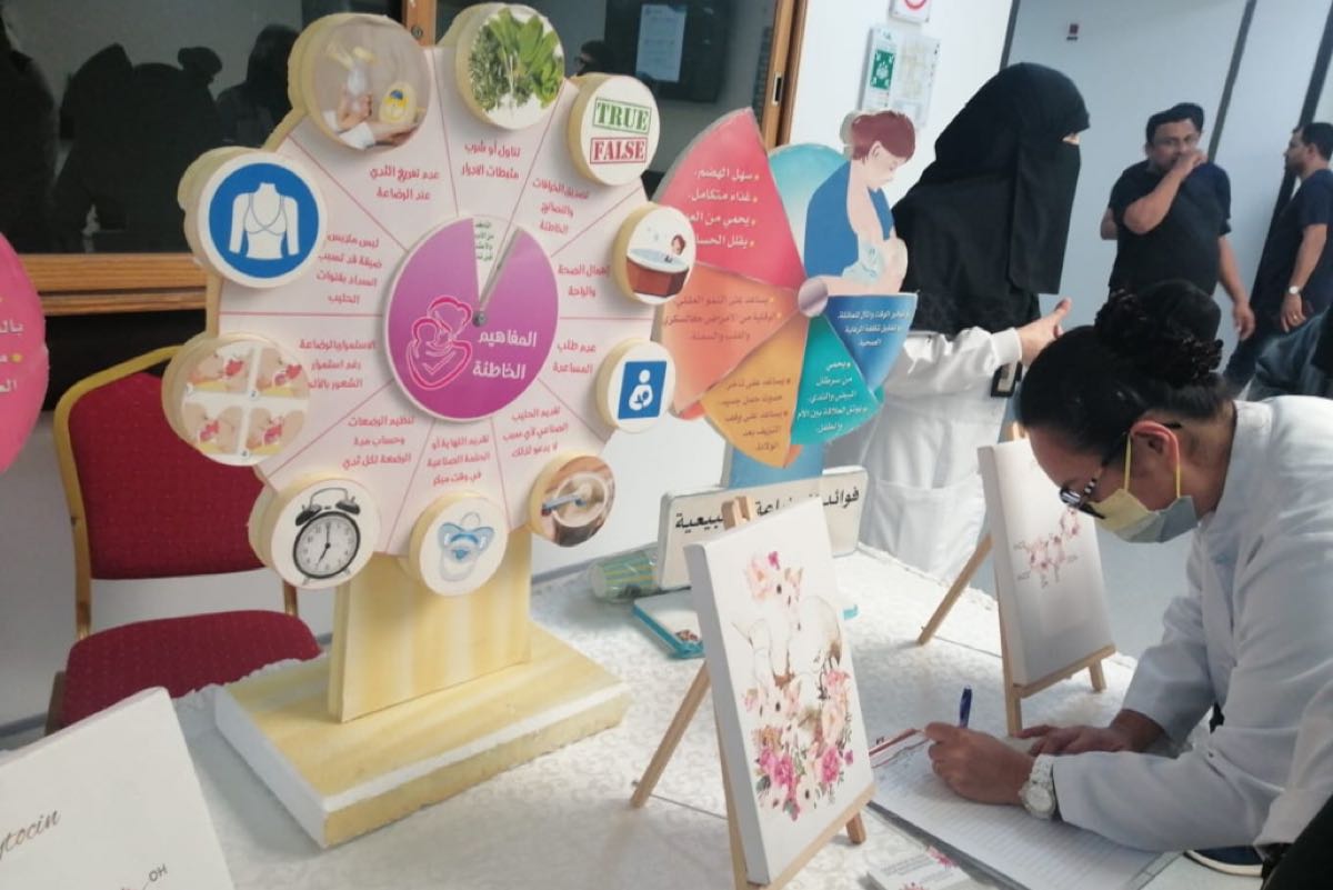 واستهدف الأسبوع الموظفات والمراجعات للمستشفى، بالإضافة إلى الأمهات، وأكدت استشارية أطفال وعناية مركزة لحديثي الولادة د. غنيمة الزاهر أهمية الرضاعة الطبيعية لما لها من فوائد كبيرة للأم والطفل.