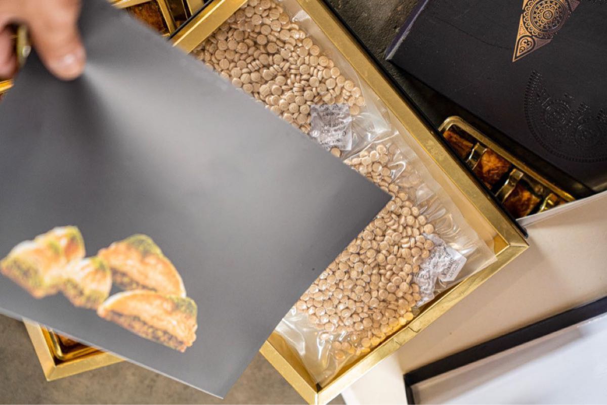 وأوضحت الهيئة أنه وردت إرسالية حلويات عبارة عن ”بقلاوة“ وعند خضوعها للإجراءات الجمركية والكشف عليها عبر التقنيات الأمنية، عُثر على تلك الكمية من الحبوب مُخبأة أسفل طبقات ”البقلاوة“.