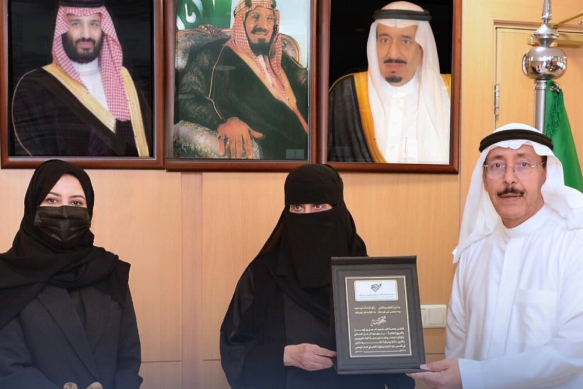 سلم رئيس جامعة الإمام عبد الرحمن بن فيصل د. عبد الله الربيش، وثيقة التخرج ودرع التكريم للخريجة سلوى العماني التي تُعد أكبر خريجة جامعية في تخصص علم الاجتماع من كلية الآداب.