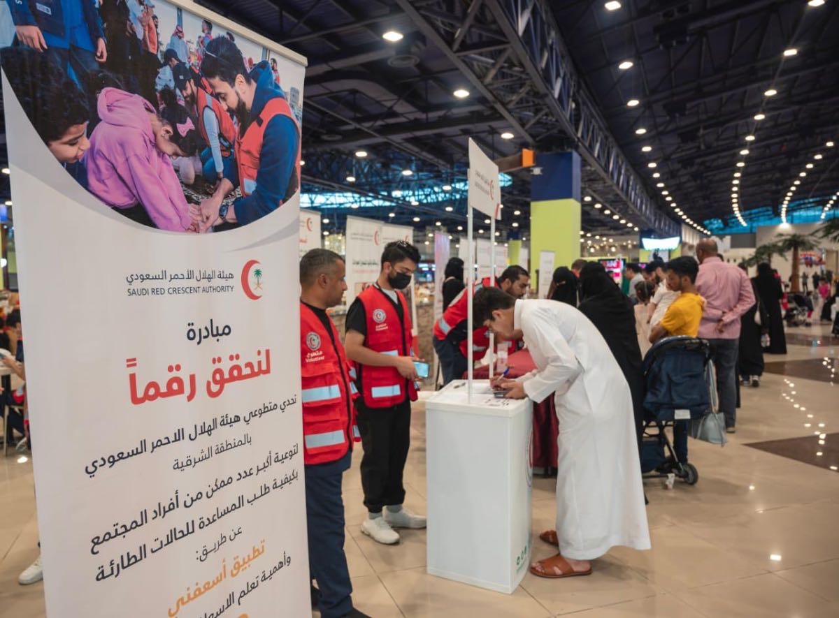 نظم فرع هيئة الهلال الأحمر السعودي بالمنطقة الشرقية، فعالية ”لنحقق رقمًا“، في أحد المجمعات التجارية بالدمام، بهدف توعية أفراد المجتمع بتطبيق ”أسعفني“، وكيفية طلب الخدمة الإسعافية من خلاله.