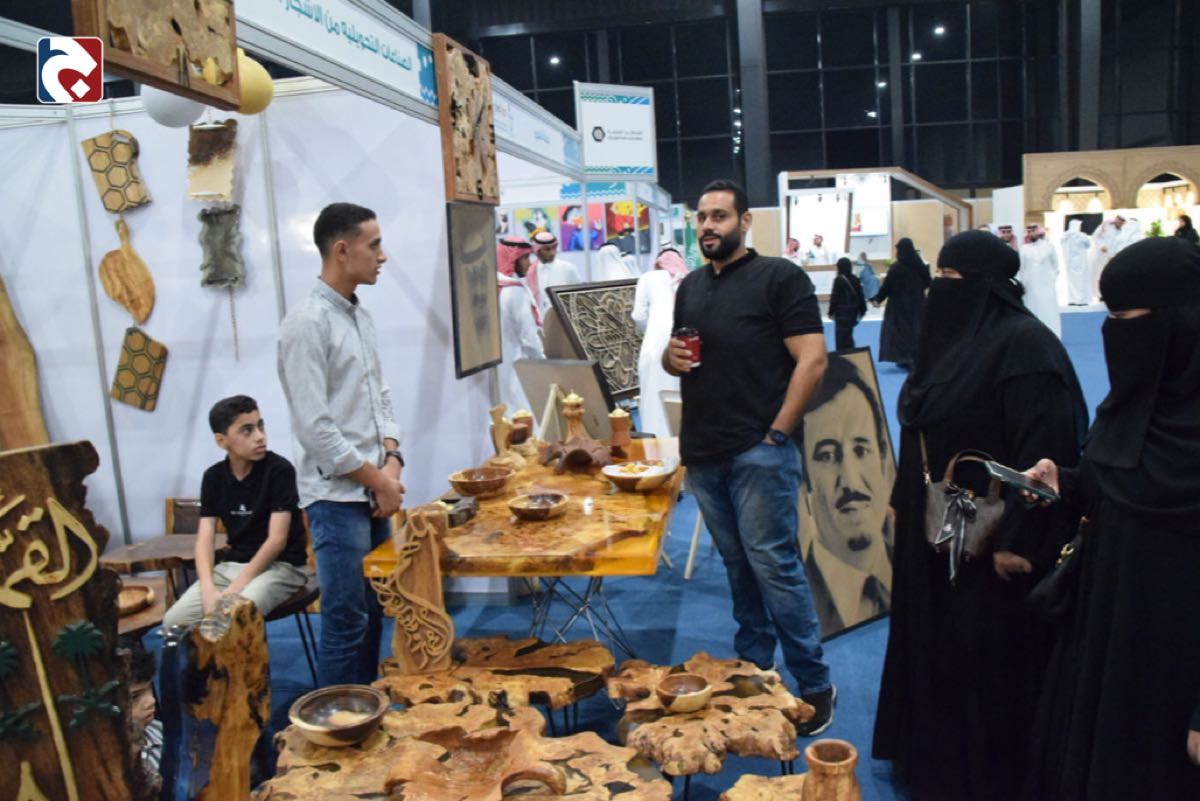 ومن ضمن الأجنحة المتميزة، جناح الحرف والأعمال اليدوية، ويضم نحو 150 ركن يقدم من خلالها أصحاب الحرف والأعمال اليدوية ابداعاتهم الفنية ويقدمون منتجات ذات جودة عالية سواء من ناحية التصميم أو الإخراج، وبرز ركن ”عابث خشب“ الذي يقدم تحفًا فنية من طاولات الطعام والقهوة إلى المباخر والصواني والصحون وحتى الأقلام، مصنوعة جميعها من خشب الأشجار الطبيعية سواء شجر الزيتون أو الصفصاف أو النخيل المحلي ويقول صاحب الركن ”علي عبدالله الشوملي“ إنه يهوى النجارة منذ الصغر ولديه شغف كبير بالأعمال الخشبية، إلا أنه أخذ يفكر في كيفية تقديم أشياء متميزة، فكانت فكرة الاستفادة من أخشاب الأشجار المقطوعة أو تلك التي يتم تجهيزها للحرق بإعادة تدويرها مرة أُخرى وتقديمها في شكل تحف فنية، وأشار إلى أنه بتشجيع الأهل والأصدقاء ومشاركة المتابعين أخذ يمتلك قاعدة عريضة من الزبائن في غالبية مناطق المملكة، معربًا عن أمله في التوسع بشكل أكبر وتكوين شبكة عملاء خارجيين بتصدير أعماله إلى خارج المملكة.