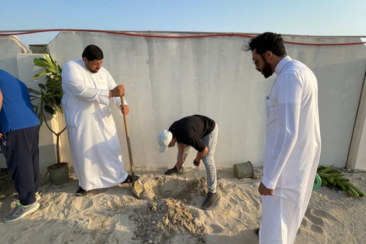ساهم 60 متطوعًا في المشاركة بتشجير 100 شجرة في مقبرة الخباقة يوم أمس.