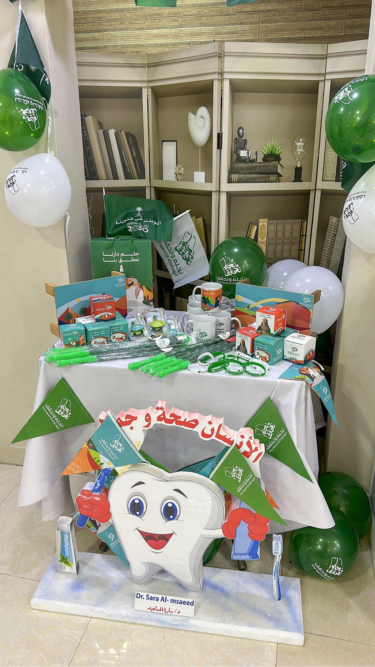 وركزت الفعالية على التوعية عن طريف عمل ركن توعوي داخل عيادة الاسنان وتوزيع المنشورات التثقيفية والوطنية والهدايا التحفيزية لليوم الوطني.
