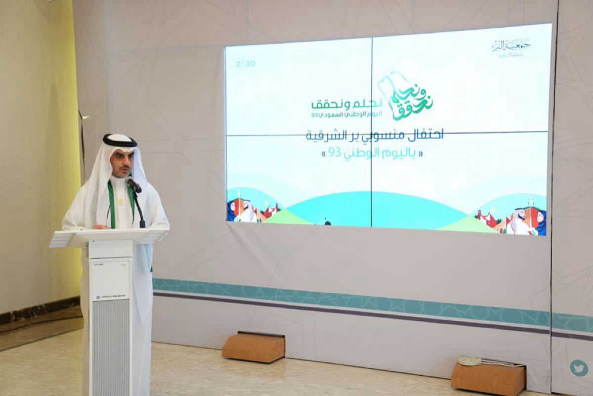 وقال خلال احتفال الجمعية بمناسبة اليوم الوطني ال 93 للمملكة: إن ما تشهده المملكة اليوم من تقدم ورقي، دليل على المضي قدما لتحقيق رؤية المملكة الطموحة 2030، والتي جعلت المملكة بعزم قادتها من أكثر الدول نماء في مجموعة العشرين.