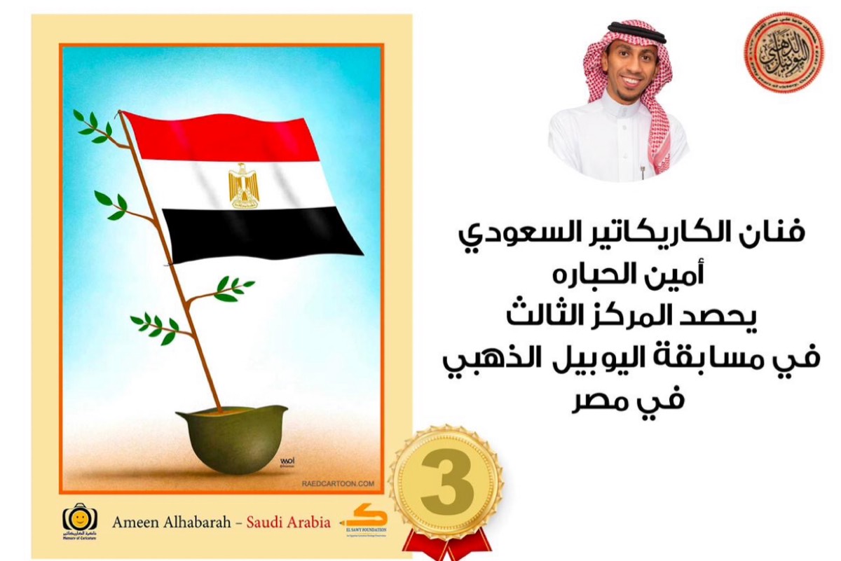 حصل الكاريكاتير أمين الحبارة في مجال الكاريكاتير، حيث حصل على المركز الثالث في مسابقة اليوبيل الذهبي للكاريكاتير في مصر.