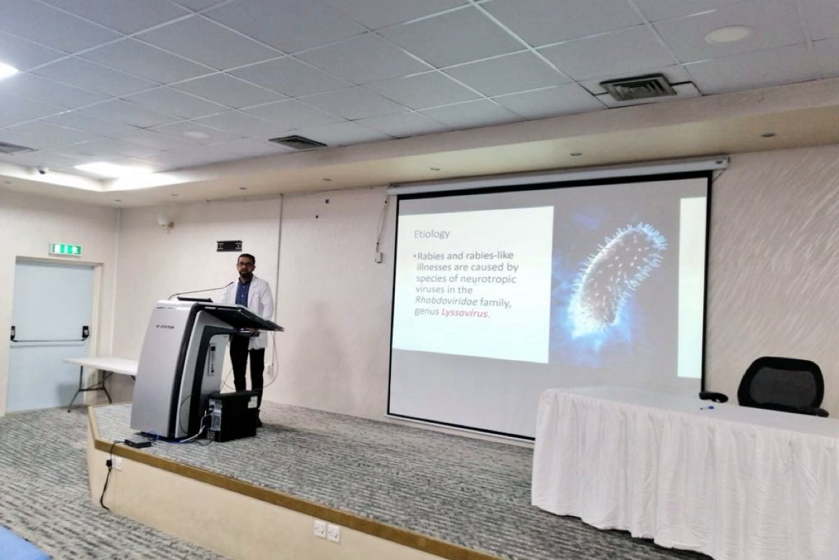 نظمت وحدة المراقبة الوبائية بالشراكة مع قسم الباطنية ”أمراض معدية“ في مستشفى القطيف المركزي، أحد مكونات تجمع الشرقية الصحي، محاضرة بعنوان ”السعار مرض مميت ممكن الوقاية منه“ بقاعة المحاضرات الكبرى.