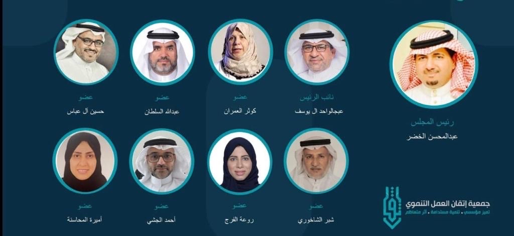 اعادت جمعية إتقان العمل التنموي تشكيل مجلس إدارتها بتعيين عبدالمحسن الخضر رئيسًا وعبدالواحد آل يوسف نائبًا.