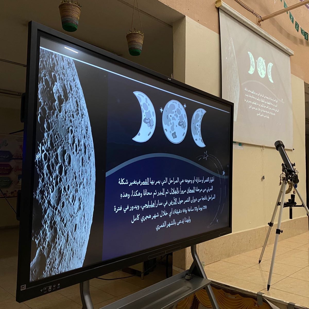 وشاهد الطلاب حركة الكواكب في المجموعة الشمسية عبر تقنيات الفيديوجراف المحاكي للفضاء، إضافةً إلى التعريف باستخدامات أنواع التلسكوبات المختلفة، وأطوار القمر خلال الأشهر الهجرية.