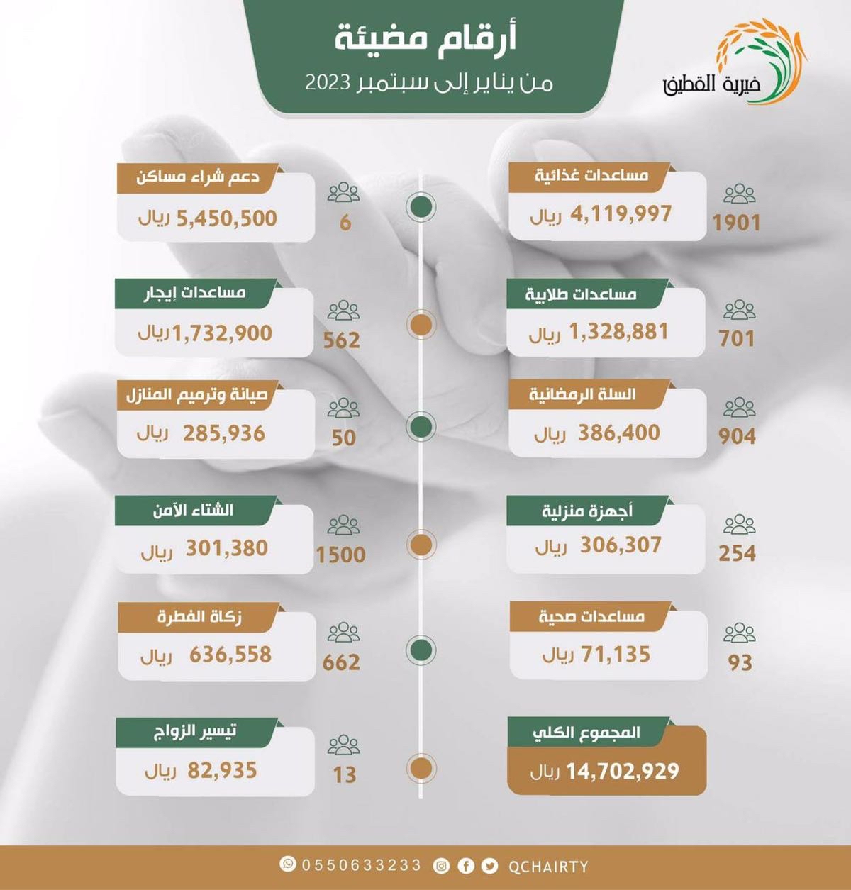 4,4 ملايين ريال مساعدات «خيرية القطيف» في الربع الثالث لـ 2023