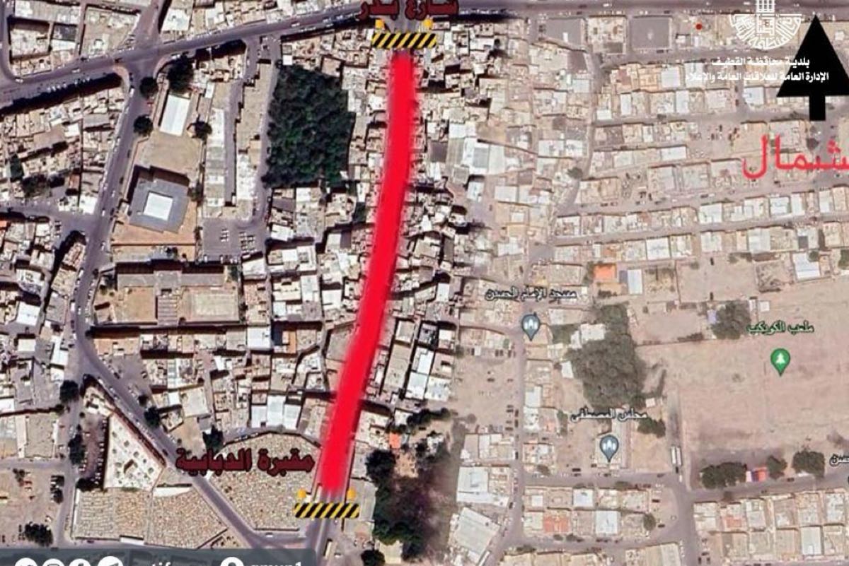 أعلنت بلدية محافظة القطيف بالتعاون مع مرور المحافظة عن البدء في «المرحلة الثانية» لاغلاق شارع الملك عبدالعزيز، ابتداء من تقاطع شارع بدر وحتى تقاطع شارع 5 «مقبرة الدبابية»، ابتداءً من يوم الثلاثاء القادم.