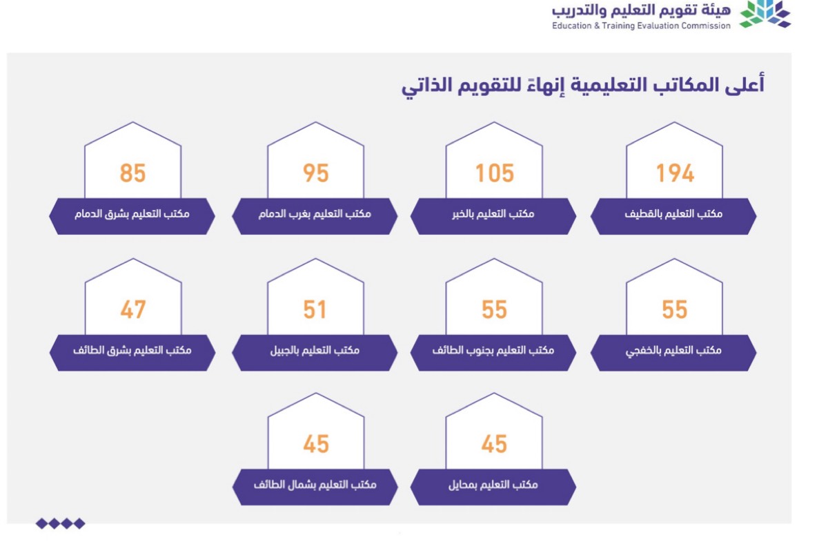 حصل مكتب التعليم بمحافظة القطيف، على المركز الأول على مستوى المملكة، في قائمة أعلى المكاتب التعليمية إنهاءً للتقويم الذاتي، وذلك في نتائج مؤشرات مشروع التقويم والاعتماد المدرسي، التي أعلنتها هيئة تقويم التعليم والتدريب.