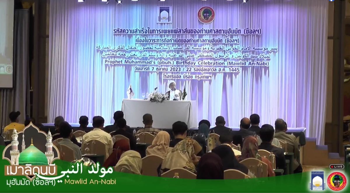 جاء ذلك في الكلمة التي القاها في المؤتمر الذي أقامته مؤسسة الإمام الخوئي الخيرية، بالتعاون مع مؤسسة البحوث والدراسات الإسلامية، في العاصمة التايلاندية بانكوك، بمناسبة المولد النبوي الشريف، تحت عنوان «سر إنجازات النبي الأكرم في نشر الرسالة»، بتاريخ 22 ربيع الأول 1445 هـ الموافق 7 أكتوبر 2023 م وشارك فيه عدد من الشخصيات الدينية والفكرية والاجتماعية من مختلف الدول والطوائف.