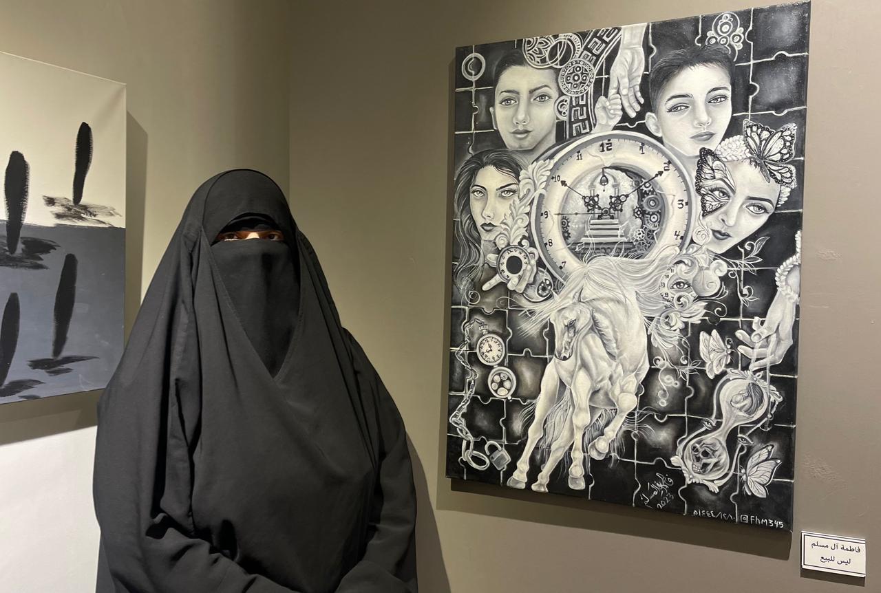 أبهرت الفنانة فاطمة آل مسلم في معرض ”أبيض وأسود“ الزائرين بلوحتها التي حملت عنوان ”ربيع العمر“ والتي حكت فيها عن قصة حياة الإنسان منذ الولادة وحتى حياة البرزخ.