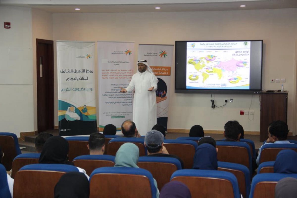 واستهدفت الحملة كلية محمد المانع للعلوم الطبية، متمثلة بلجنة خدمة المجتمع، وذلك بإقامة محاضرة توعوية أدارها مدير البرامج العلاجية والوقائية بمكافحة المخدرات بالمنطقة الشرقية أحمد الصالحي، تحدث فيها عن الوعي الأمني للوقاية من جرائم المخدرات، وما تشكله هذه الآفة من خطر كبير آثار سلبية في تدمير القدرات العقلية للفرد وآثارها على الأسرة والمجتمع، وأساليب الوقاية منها، مؤكدًا على دور الأسرة في توعية وحماية الأبناء من هذه الآفة.