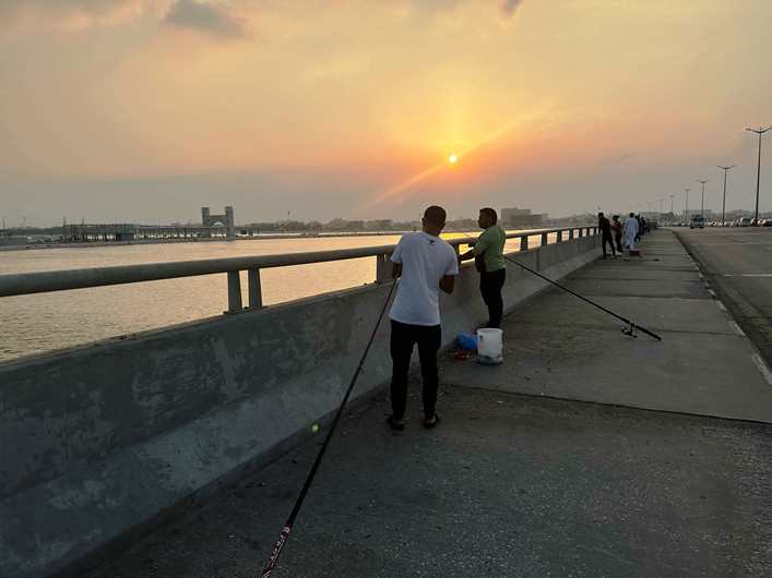 كما اكتظ المكان بمجموعة من المقيمين في المنطقة بسناراتهم لممارسة صيد الأسماك، ومنهم المقيم ”سيدرو“ من الجنسية الفلبينية الذي اعتاد أن يأتي للاصطياد في فترة ما بعد الظهيرة ووقت فراغه.