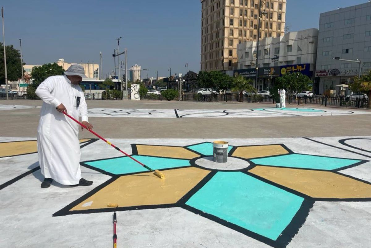 رسامو تعليم الشرقية يشكلون ارضيات الحدائق بزخرفة إبداعية