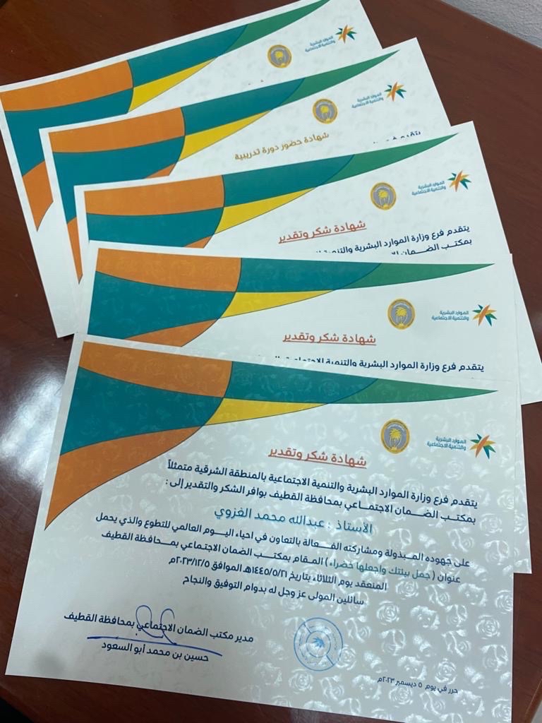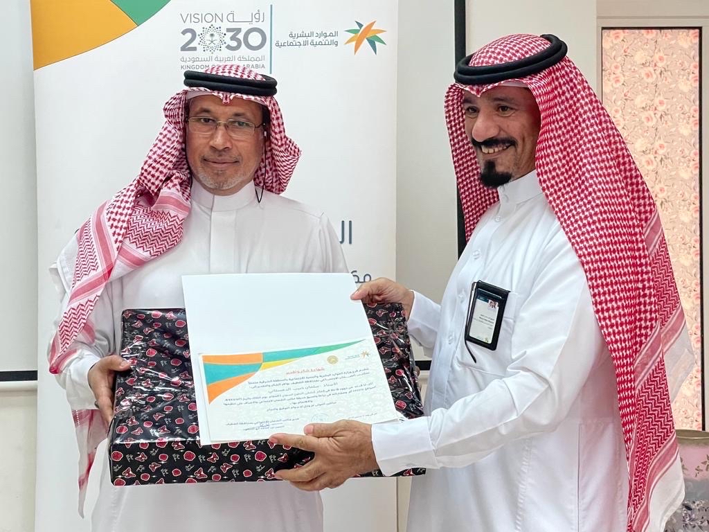 كما تم تقديم شهادة شكر وتقدير للموظف في قسم البحث والدراسات الاجتماعية سلمان الدمستاني، لجهوده التطوعية المبذولة في زراعة وتشجير مرافق المكتب، وتشجيعه على السلوك البيئي المستدام، وتحسين المشهد الحضاري الخارجي للمكتب.