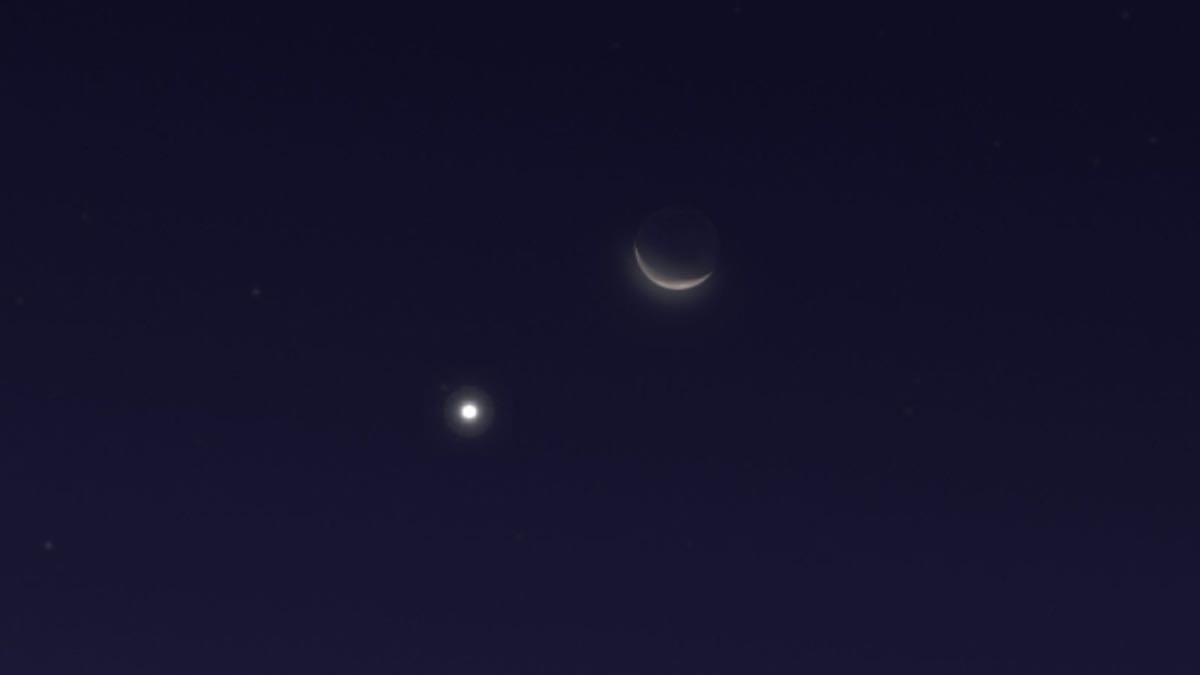 وبيّن أن كوكب الزهرة شديد السطوع؛ لأن غيومه الكثيفة تعكس معظم ضوء الشمس الذي يصل إليه «حوالي 70%» إلى الفضاء، ولأنه أقرب كوكب إلى الأرض، وأنه سيلاحظ أيضًا أن الجزء غير المضاء من سطح القمر مضيء بنور خافت عبارة عن ضوء الشمس المنعكس عن الأرض والساقط على القمر.