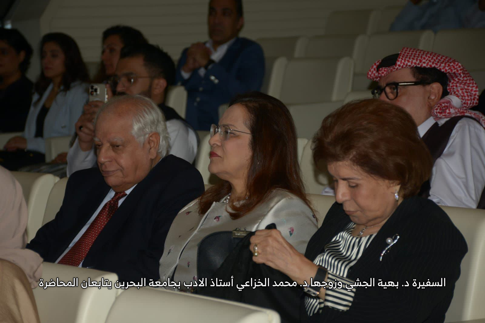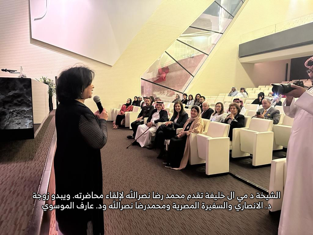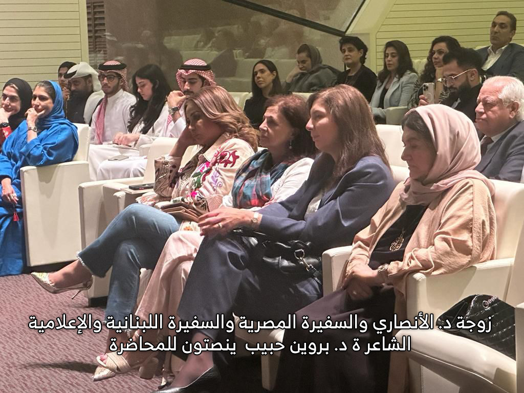 وحضر المحاضرة عدد كبير من السفراء والدبلوماسيين والأكاديميين والأدباء والإعلاميين، وقدمت الشيخة د. مي آل خليفة في نهاية المحاضرة هدية تذكارية للإعلامي محمد رضا نصرالله. بحضور زوجة د الأنصاري وبناته.