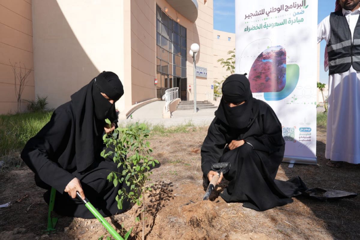 غرس نادي السعودية الخضراء بالكلية التقنية للبنات بالأحساء وبالتنسيق مع مكتب وزارة البيئة والمياه والزراعة، 60 شتلة زراعية ضمن المرحلة الأولى للبرنامج الوطني للتشجير تحت مسمى ”فلنغرسها“.
