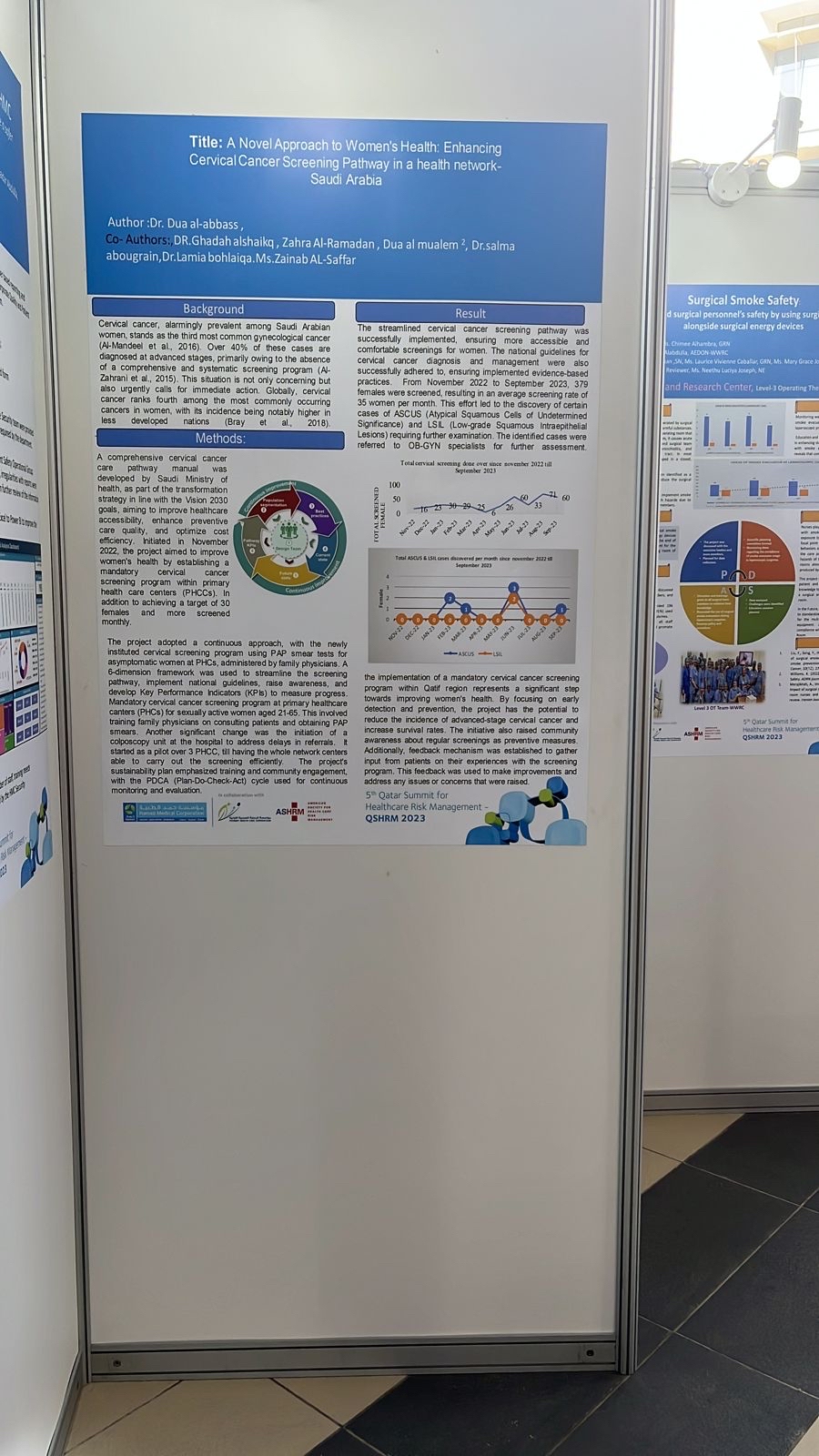 وتمثل المشروع الأول في ”نهج متعدد الأبعاد لبرنامج فعال لمنع تجلط الدم المكتسب في المستشفيات“، فيما تمثل المشروع الثاني في ”نهج شامل لتعزيز مسار الكشف عن سرطان عنق الرحم في شبكة الرعاية الصحية“.