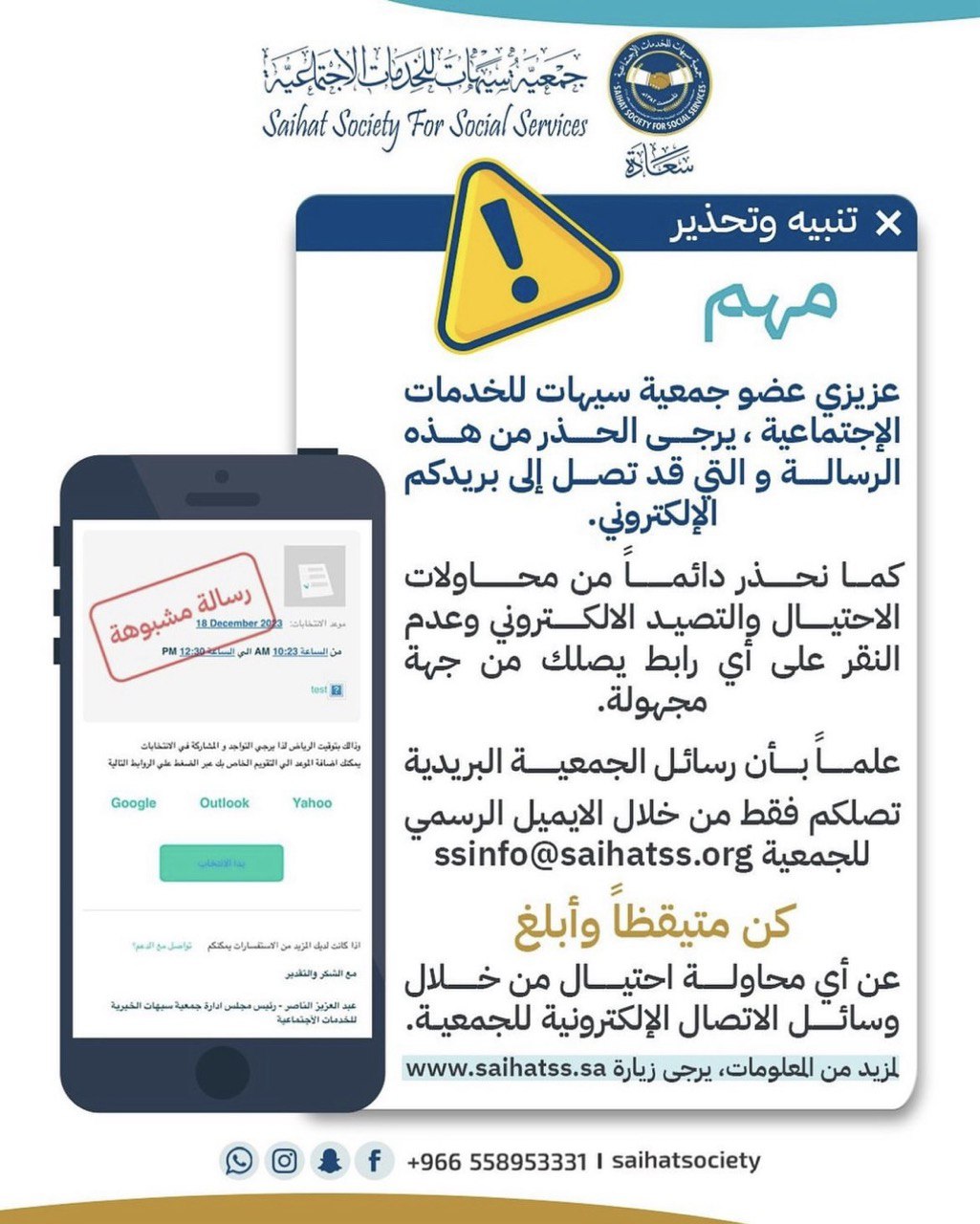 ”خيرية سيهات“ تحذر من رسالة مشبوهة