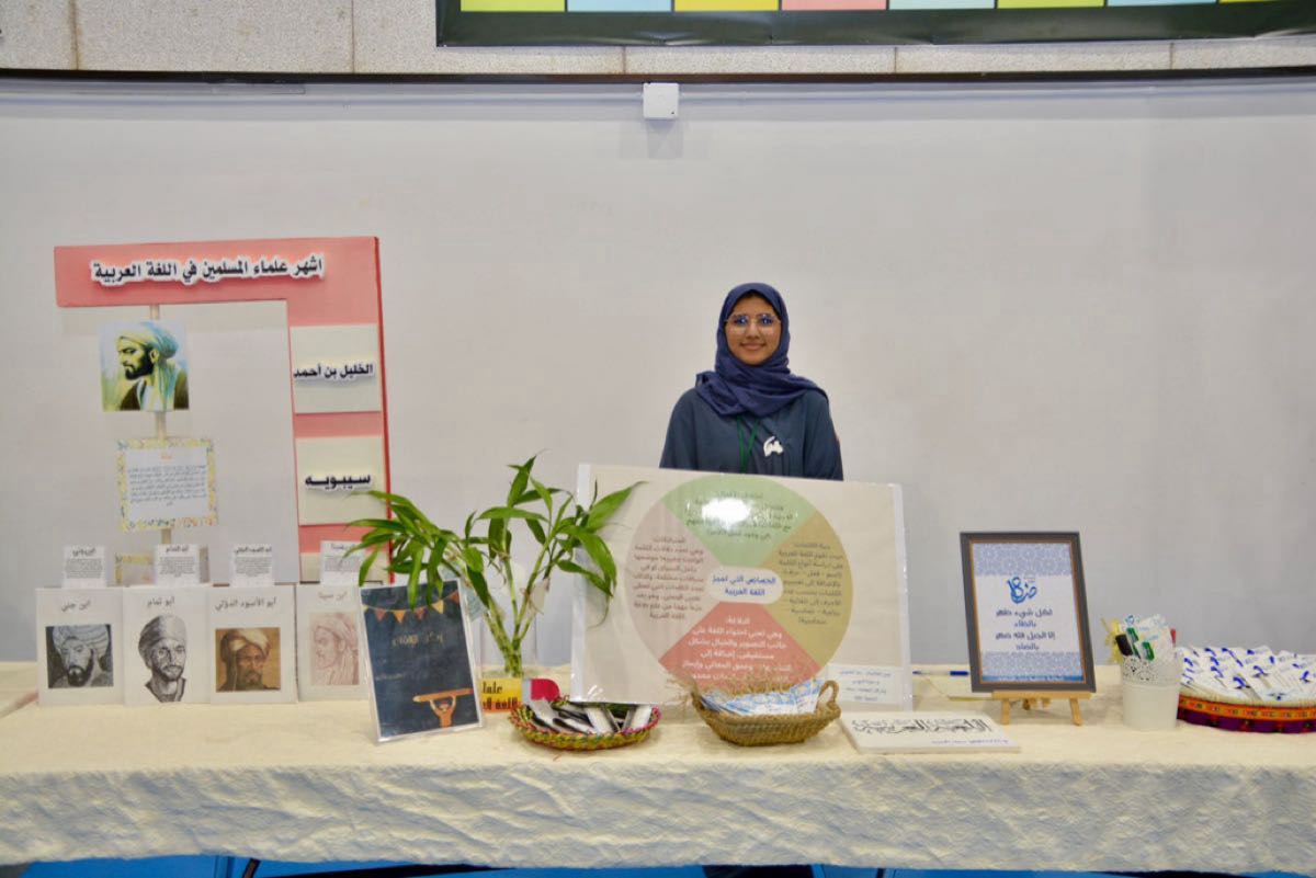 ضمَّ المعرض أركانًا متنوعة أظهرت فيها طالبات المدرسة بهاء اللغة العربية وسعتها وتأثيرها، وتحدثن من خلالها عن تاريخ العربية وتطورها، وعراقتها وأهميتها وخصائصها، وعرفن بعدد من علمائها وشعرائها، وقدمن أفكارًا عديدة لاستثمار التقنية الحديثة وتطبيقاتها في تعليم علوم اللغة العربية وتقديم دروسها.