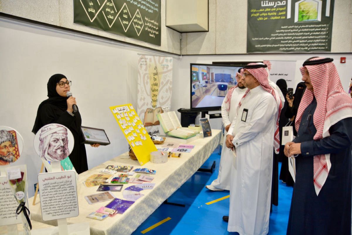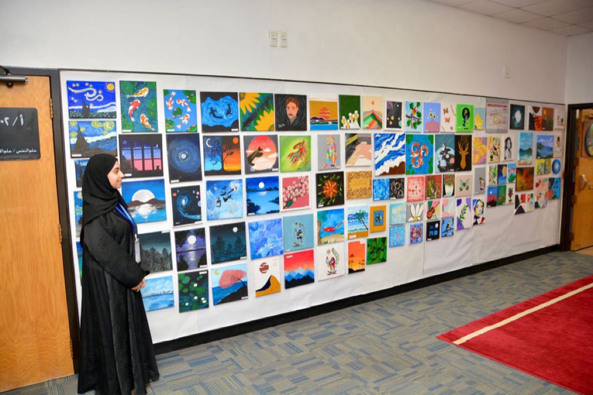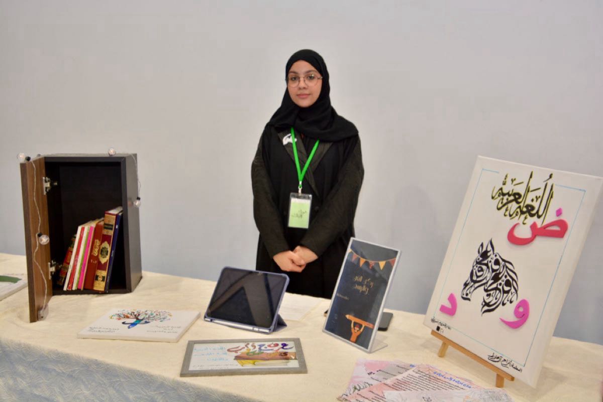 واتسم المعرض بإبداعات الطالبات في فنون تتناغم مع اللغة العربية، كالخط العربي، والرسم الممزوج بسحر العربية، والإنتاجات الفنية التعليمية.