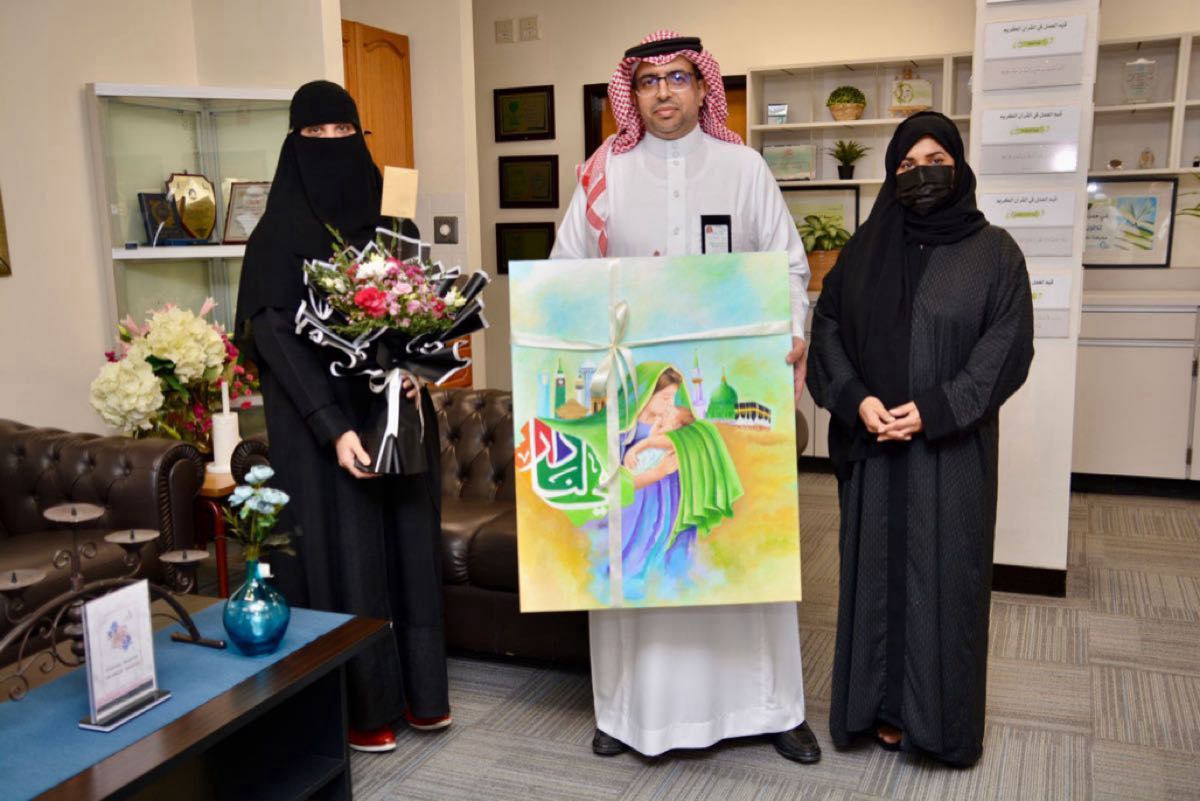 وتجول مدير مكتب تعليم القطيف والحضور في أروقة معرض ”نبض الأنامل“، المقام في المدرسة نفسها، وفيه تقدم طالبات المدرسة تجاربهن الفنية ويعرضن أعمالهن الإبداعية في الإنتاج الفني، والرسم التشكيلي، وبدائل الفن، والفن الرقمي، وفن التلزيق/الكولاج، وفن التزيين/الديكوباج، وفن الفسيفساء، وفن البوب.