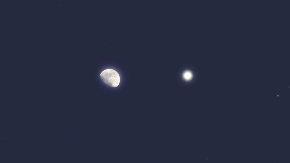 قال رئيس الجمعية الفلكية بمحافظة جدة م. ماجد أبوزاهرة: إنه يرصد بسماء الوطن العربي بعد غروب الشمس اليوم الجمعة 22 ديسمبر 2023 وبداية الليل ولمعظم الليل، اقتران القمر الأحدب المتزايد بكوكب المشترى، عملاق نظامنا الشمسي، وسيفصل بينهما درجتان في ظاهرة جميلة مشاهدة بسهولة بالعين المجردة.