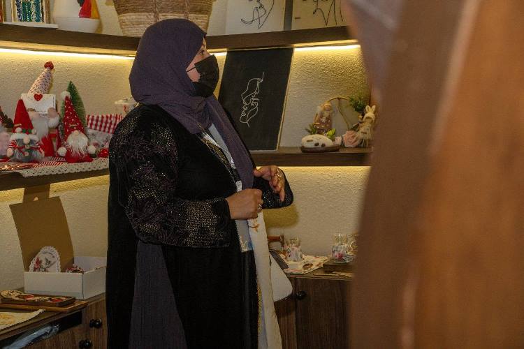 وأضافت: ”واصلت العمل في مهنة التطريز، وتعلمت العديد من الأشكال والرسومات، كما تعلمت الخياطة، وصنعت تحفًا قماشية بالخياطة، وتلبيسات للسلال وأباريق الشاي“.