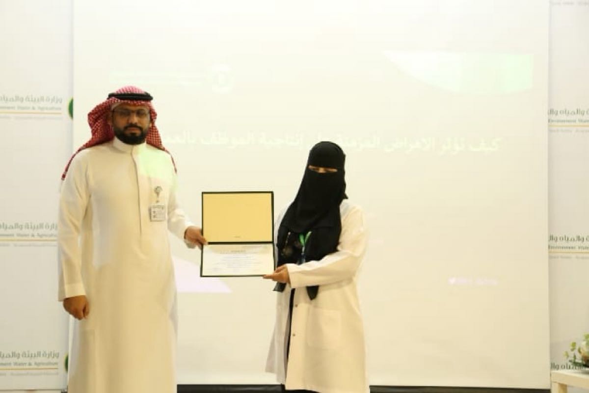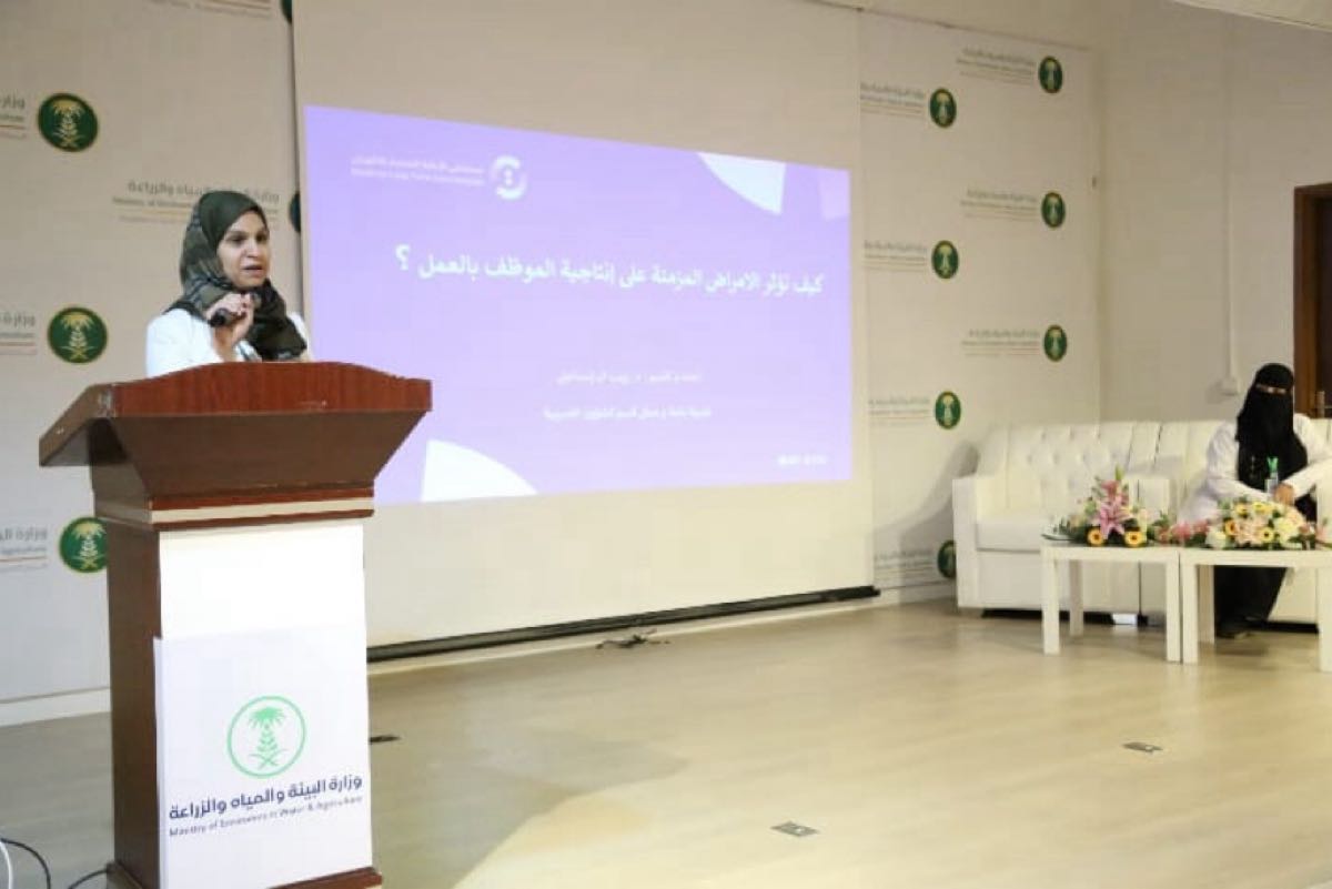 أقام فرع وزارة البيئة والمياه والزراعة بالمنطقة الشرقية، بالتعاون مع مستشفى الرعاية المددية بالظهران، محاضرتين صحيتين بعنوان ”كيف نعزز الصحة في مكان العمل؟“.