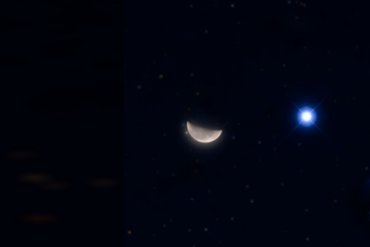 وأشار إلى وصول القمر والسماك الأعزل لحظة الاقتران عند الساعة 03:53 صباحاً بتوقيت مكة ”12:53 صباحاً بتوقيت غرينتش“، وتفصل بينهما درجة واحدة فقط.