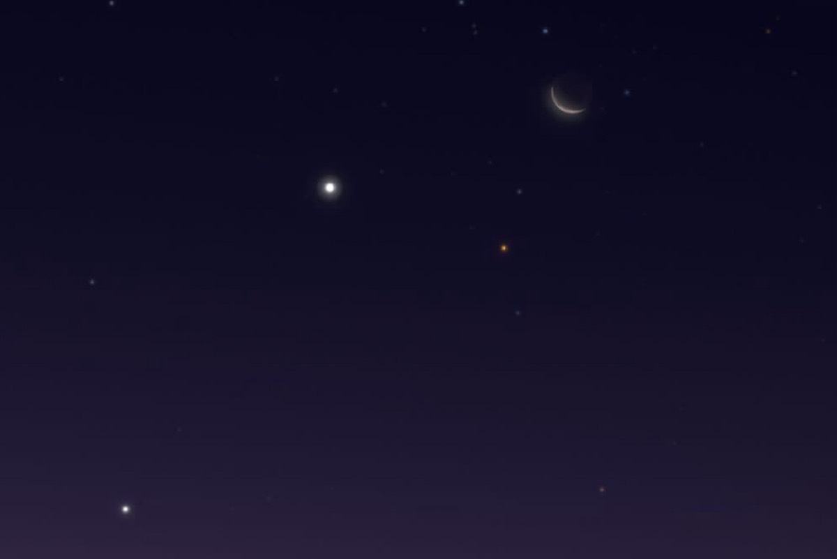 قال رئيس الجمعية الفلكية بجدة م. ماجد أبو زاهرة: إنه يرصد بسماء الوطن العربي، قبل شروق الشمس، صبيحة يوم الإثنين 8 يناير 2023 بحوالي ساعتين ونصف، انتظام هلال القمر المتناقص وكوكب الزهرة والنجم قلب العقرب، في مثلث سماوي بالأفق الجنوب الشرقي، إضافة لكوكب عطارد، وإن جميعها مشاهدة بالعين المجردة.