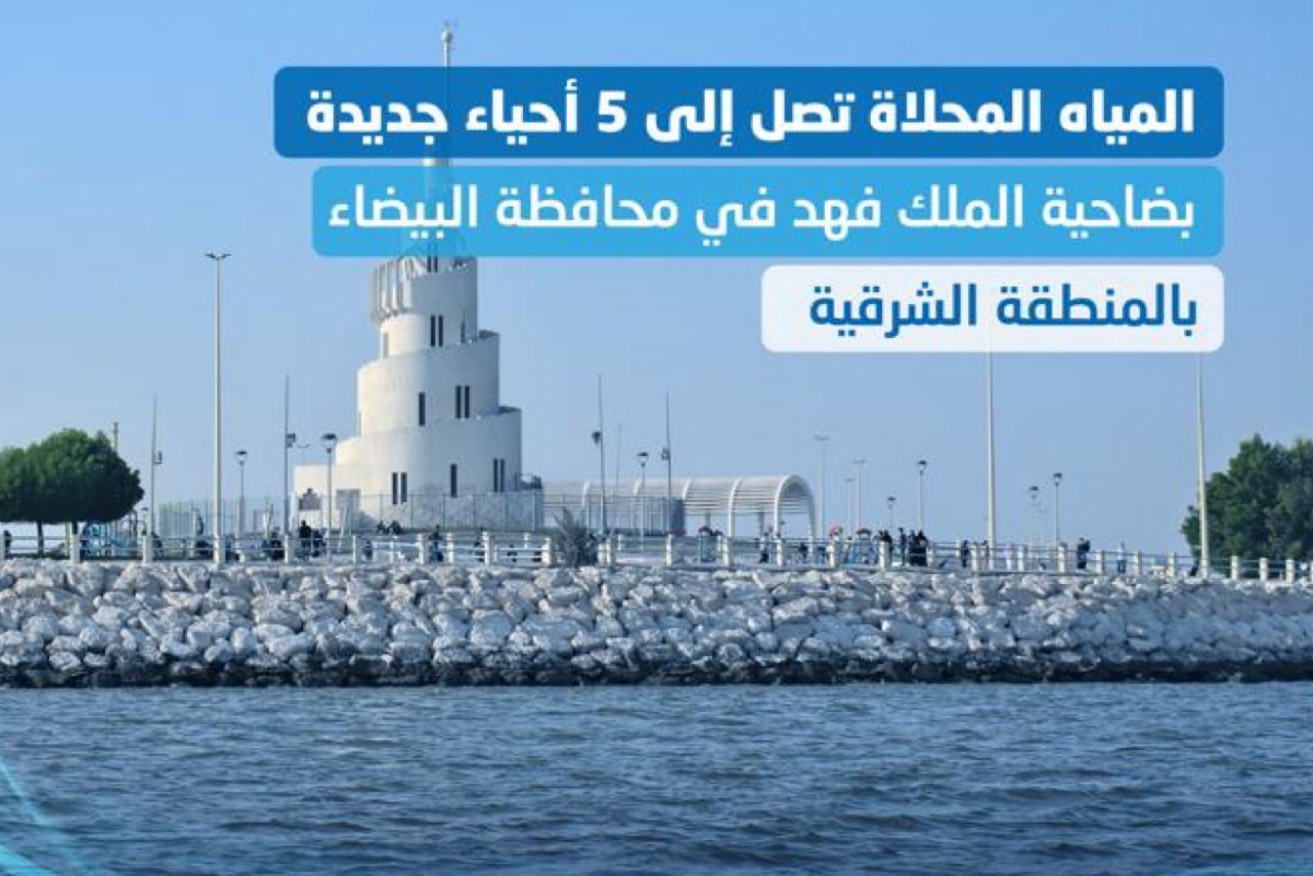 وبيّنت أن عدد المستفيدين من محطات التنقية بضاحية الملك فهد بمحافظة البيضاء يصل إلى نحو 75 ألف نسمة، وأنها تعمل على تنفيذ ما تبقى من أعمال إنشاء محطات تنقية مياه الشرب ال 7 المتبقية في مواقع أخرى بمدينة الدمام، ومحافظتي الخبر والجبيل؛ لتصل إلى 76,600 متر مكعب يوميًا من المياه المحلاة، كإجمالي إنتاج لجميع مكونات المشروع، الذي يتضمن 15 محطة تنقية للمياه المحلاة.