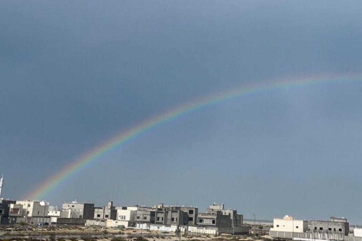 شاهد.. قوس قزح يزين سماء القطيف