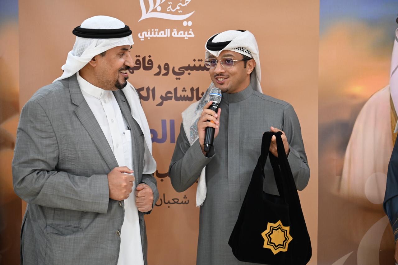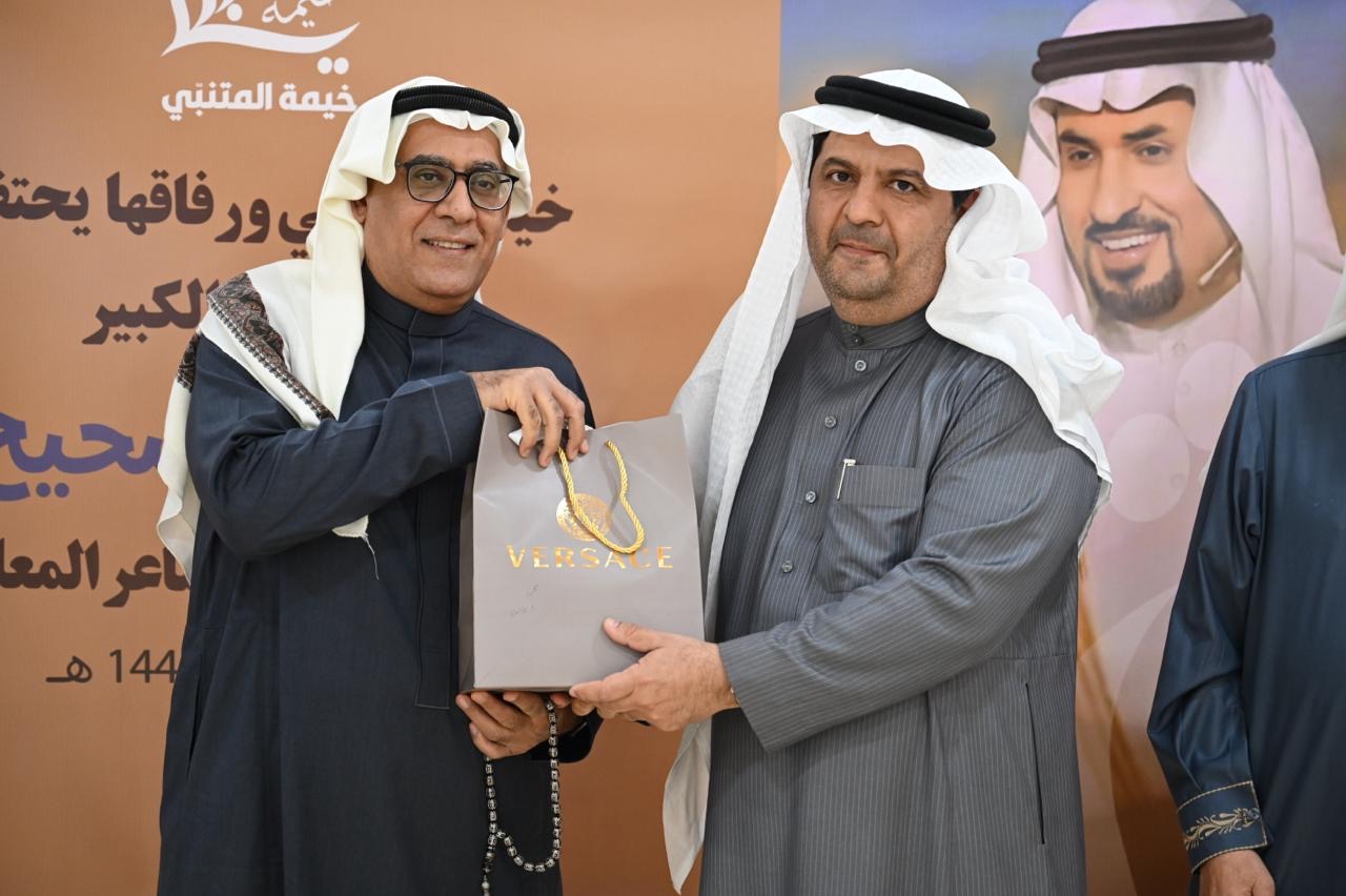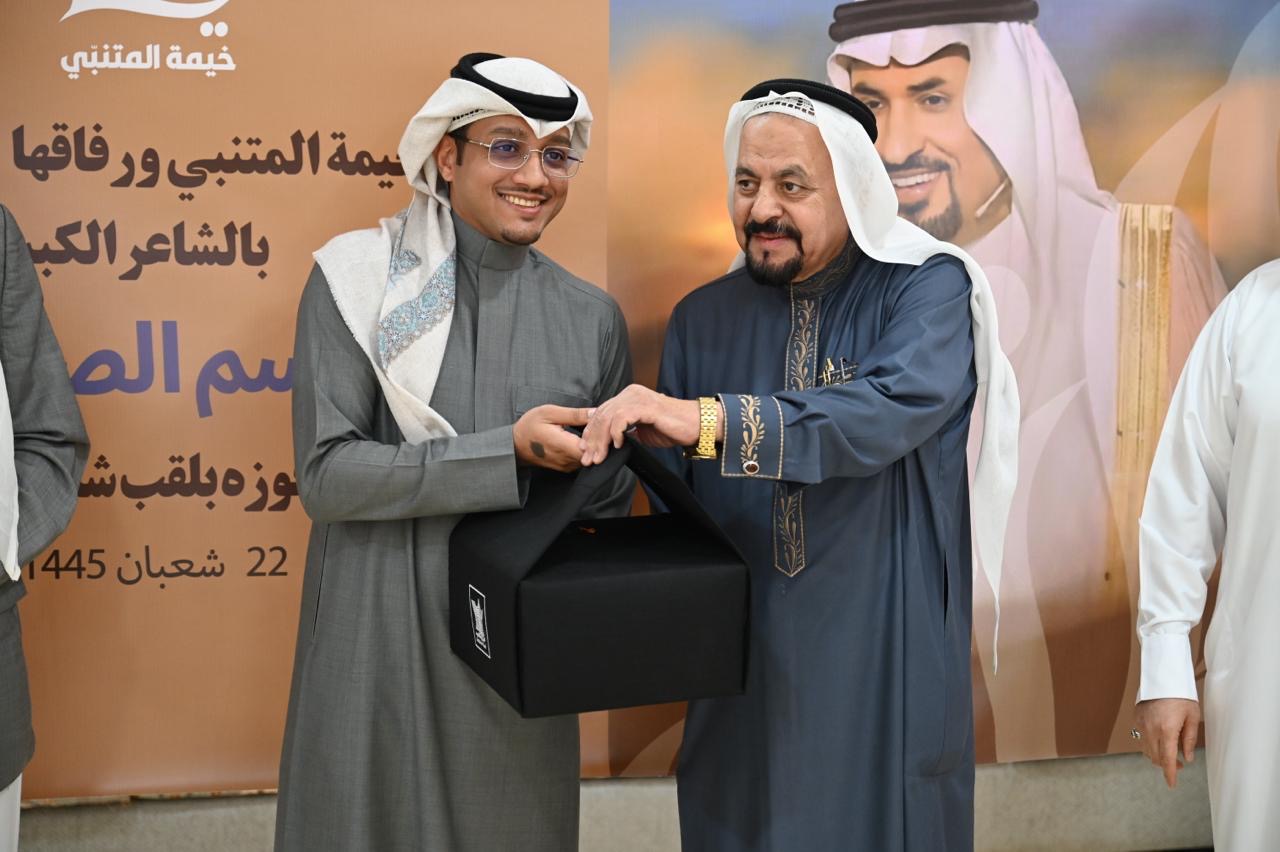 وقدم الشاعر حيدر العبدالله إهداء خاص عبارة عن نسخة تراثية نادرة من ديوان ”المتنبي“ إلى الشاعر جاسم الصحيح المتيم بعشق الشاعر العباسي.