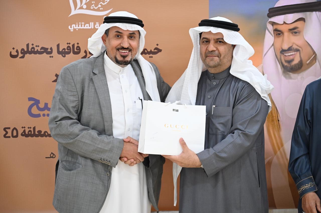 وفي الختام، قدمت خيمة المتنبي كعكة التهنئة رُسم عليها صورة ”شاعر المعلقة“، والتقطت الصور التذكارية.