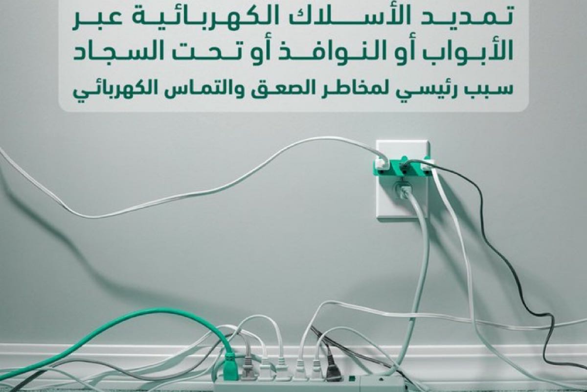 حذر الدفاع المدني السعودي من استخدام توصيلات كهربائية رديئة حتى لا تؤدي إلى وقوع حرائق التماس الكهربائي.