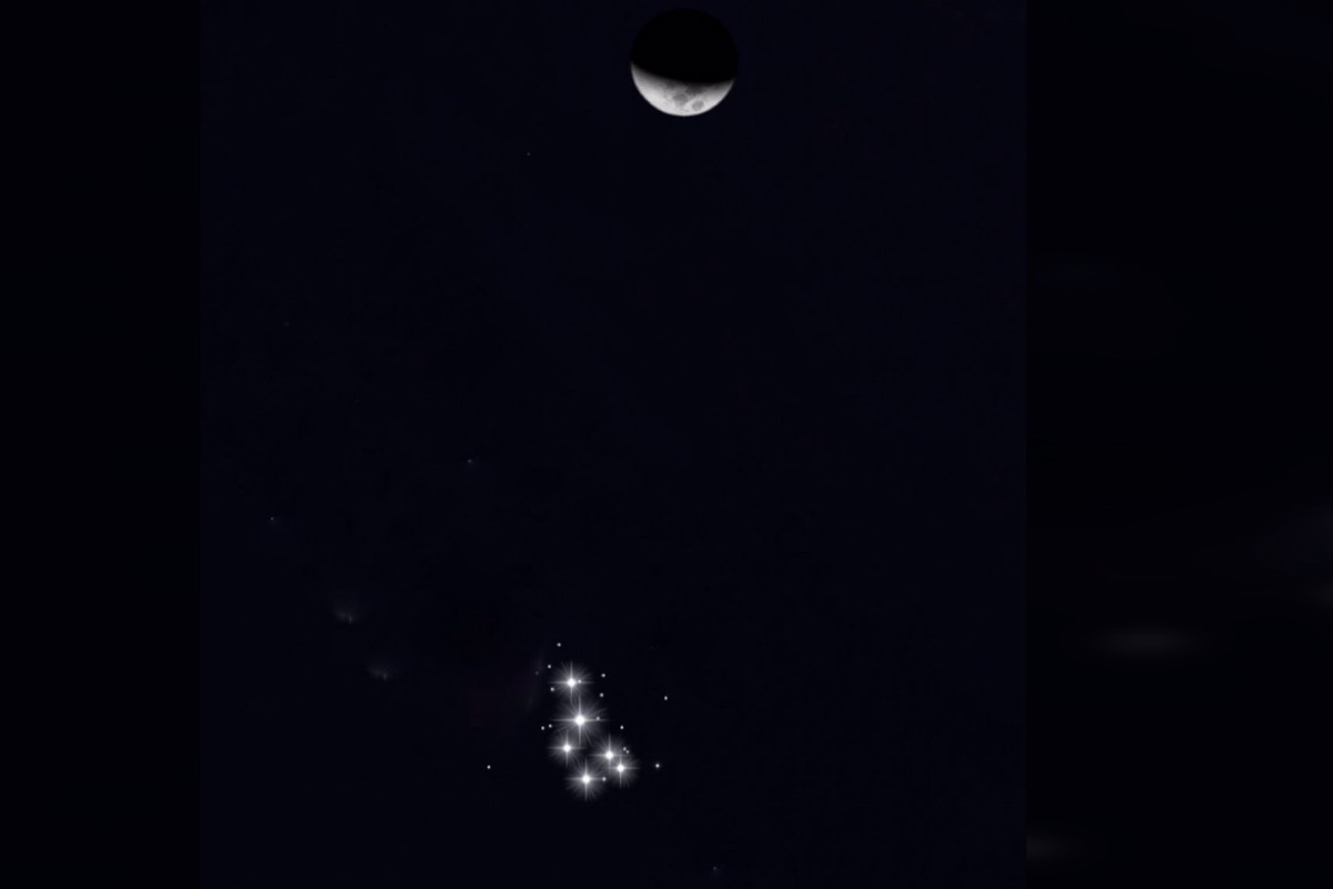 وأوضح أنه بعد غروب الشمس سيشاهد القمر عاليًا في السماء، لكن عنقود الثريا لا يمكن رؤيته من داخل المدن بسبب التلوث الضوئي، إضافةً إلى وجود ضوء القمر لذلك هناك حاجة لاستخدام المنظار بعد حلول ظلمة الليل حيث سيظهر القمر وعنقود الثريا في نفس مجال الرؤية في منظر جميل وهذه فرصة كذلك للتصوير الفلكي.