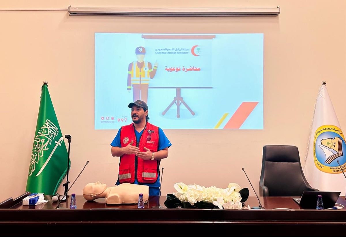 نظم فرع الرئاسة العامة لهيئة الأمر بالمعروف والنهي عن المنكر بالمنطقة الشرقية، بالتعاون مع هيئة الهلال الأحمر السعودي، لقاءً تثقيفيًا بعنوان ”أساسيات الإسعافات الأولية“.